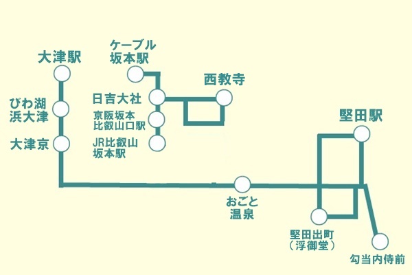 - JR大津駅~びわこ浜大津~雄琴温泉~JR堅田駅