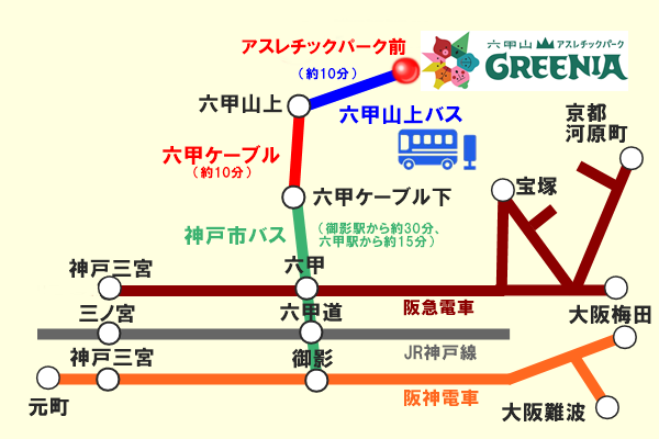 | 六甲山上バス(山上駅~アスレチック前:片道) | 大人330円(子供170円) |