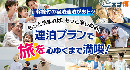 限定 | 時期・時間・場所・定番をずらすことで格安な新幹線利用の日帰り・宿泊プラン。特典の体験クーポンも魅力。 |